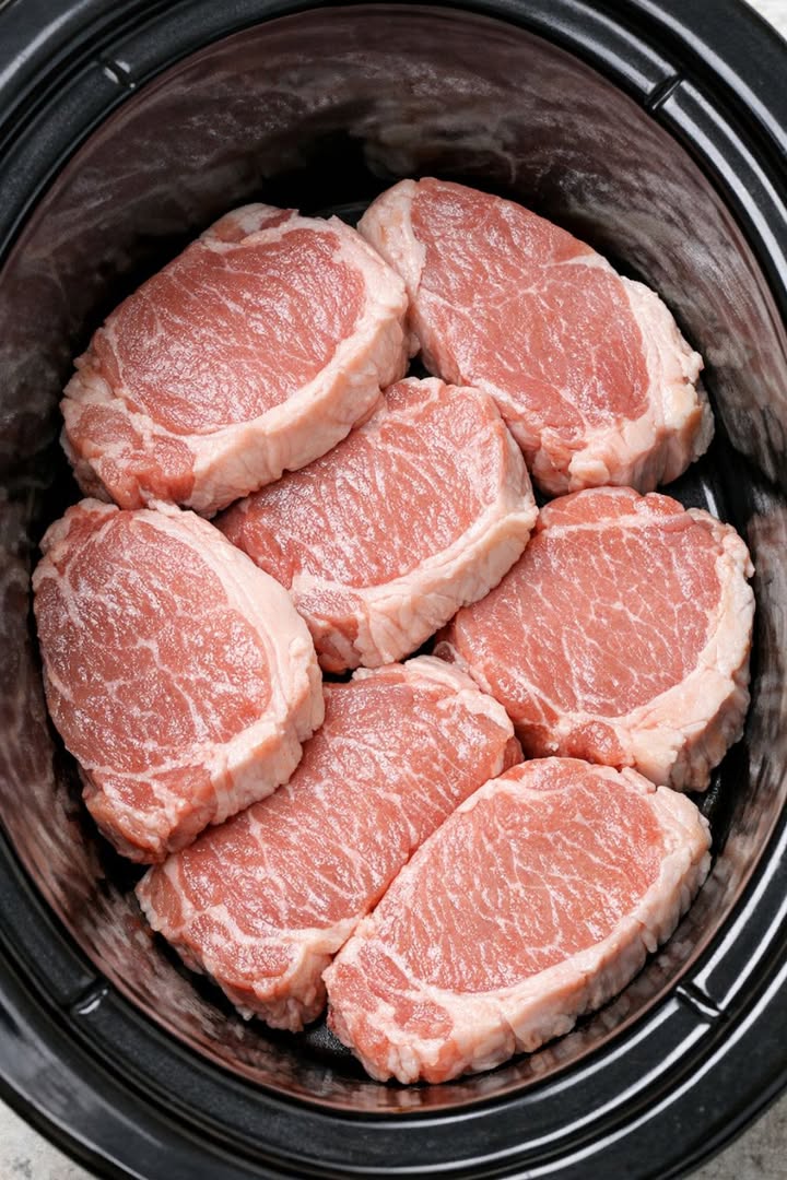 This little slow cooker supper reminds me of those soft spring evenings when the fields are just starting to green up and you don’t want to be stuck in the kitchen all day. It’s the kind of four-ingredient, dump-and-go recipe farm wives around here have leaned on for decades: raw pork sirloin chops laid right in the slow cooker, a bright, tangy sauce poured over the top, and by dinnertime you’ve got tender, spoon-soft meat and vegetables that taste like you fussed for hours. No browning, no fancy steps—just honest, comforting food that lets you sit on the porch and watch the sunset while supper takes care of itself.