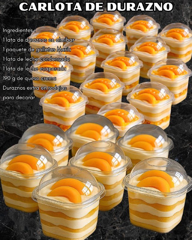 Coloca rodajas de durazno encima de la última capa de crema.