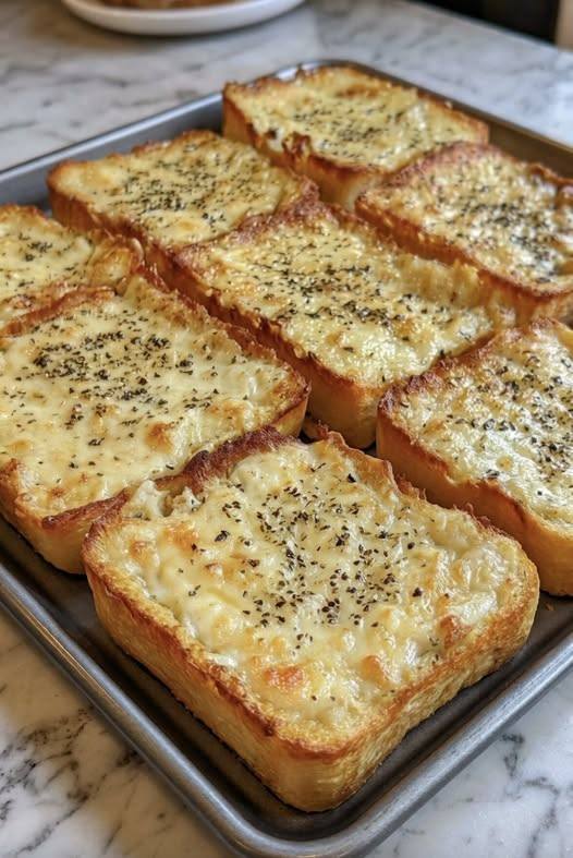 This cheesy Texas toast takes classic garlic bread to the next level. Thick slices of bread act as the perfect base for layers of melty mozzarella and provolone, creating a rich, gooey center with crispy edges. The real flavor boost comes from a savory garlic butter mixed with herbs and Parmesan, soaking into the bread while it toasts to golden perfection.