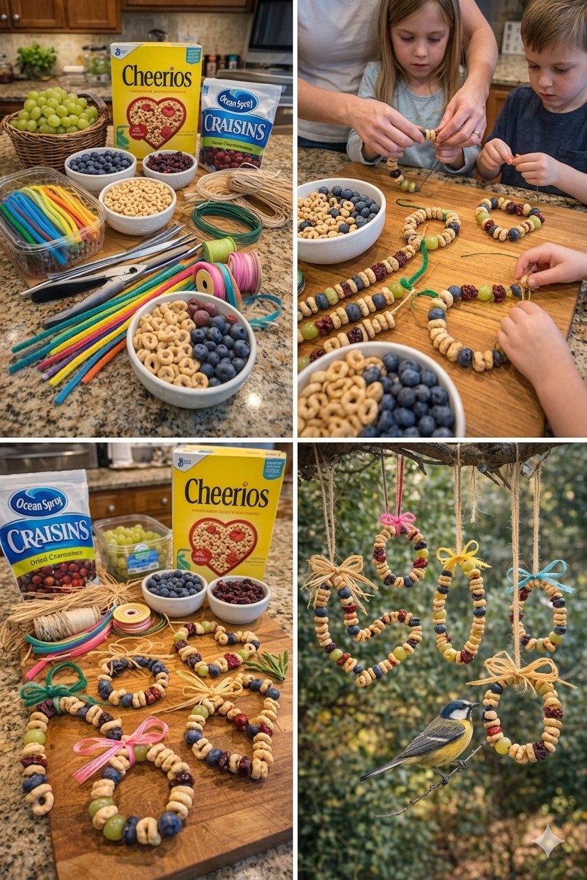 Looking for a fun and easy craft to do with the kids; These delightful Fruit & Grain Bird Feeders will attract cheerful feathered friends! 🐦🌿