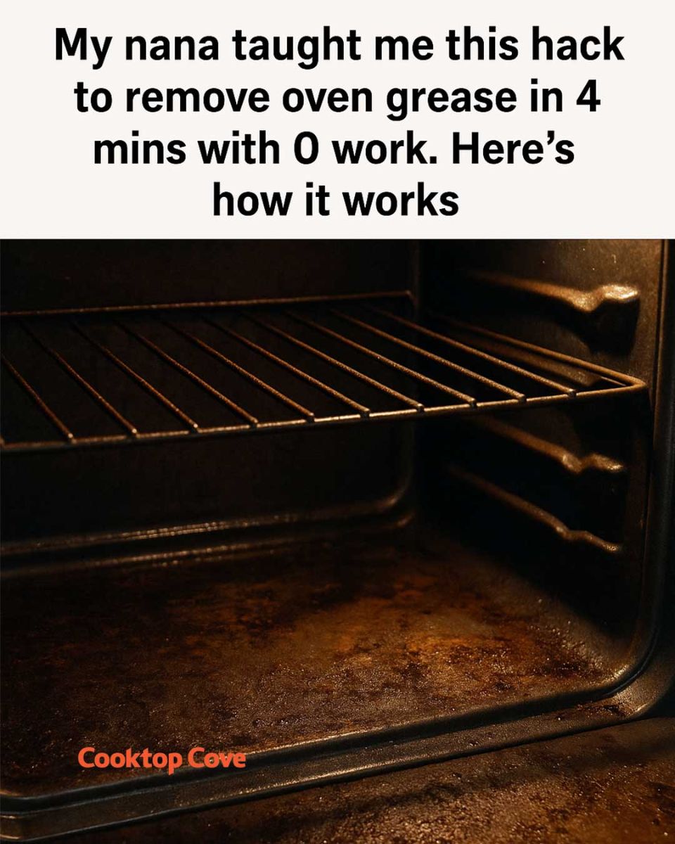 My nana taught me this hack to remove oven grease in 4 mins with 0 work. Here’s how it works