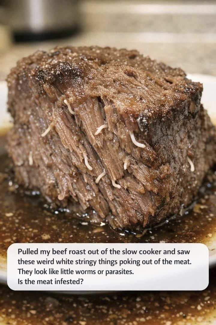 It’s natural to be concerned if you see something unexpected in your food, especially if it resembles worms or parasites. However, in most cases, these white, stringy bits are not worms but rather parts of the meat’s structure known as connective tissue. Connective tissue is made up of proteins like collagen, which is common in beef roasts and can appear stringy after slow cooking.
