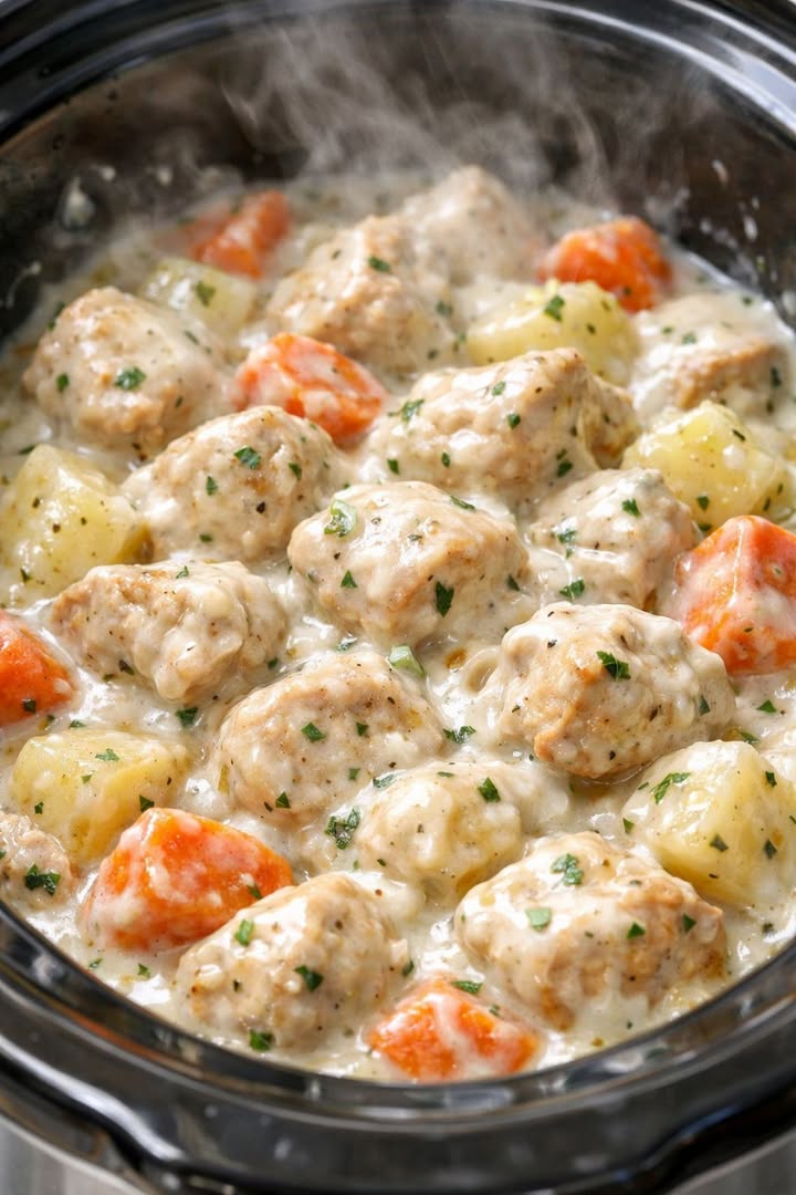 This 4-ingredient slow cooker creamy ranch chicken and potatoes is the kind of “set it and forget it” dinner that makes busy weekdays feel a little easier. You toss everything into the slow cooker before work, and by the time you walk back through the door, the chicken and red potato chunks are fall-apart tender and coated in a thick, ranch-seasoned cream sauce. It’s very much a Midwest-style comfort dish—simple pantry staples, no fussy steps, and a cozy, stick-to-your-ribs flavor that the whole family can dig into.