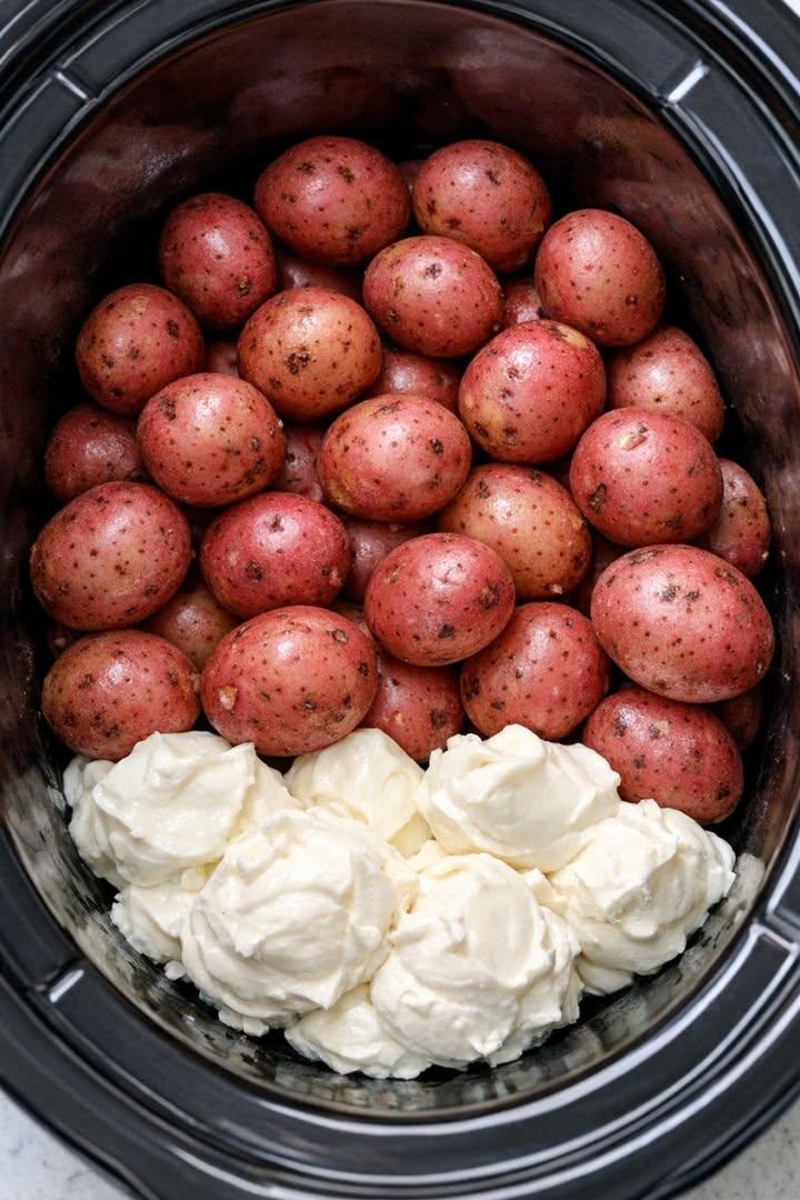 Toss raw baby red potatoes in the slow cooker and 3 other simple items to get a meal so delicious your family will be begging for more this Easter.