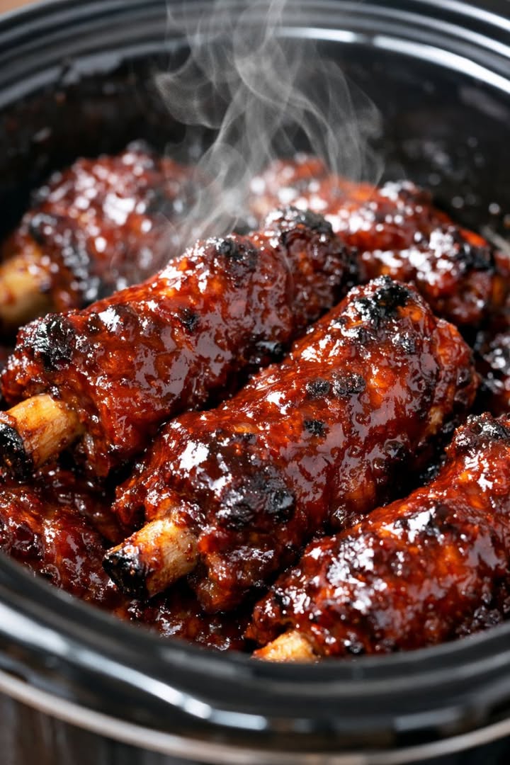 Cover and cook on LOW for 6 to 8 hours, or on HIGH for 3 to 4 hours, until the ribs are very tender and easily pull apart with a fork.