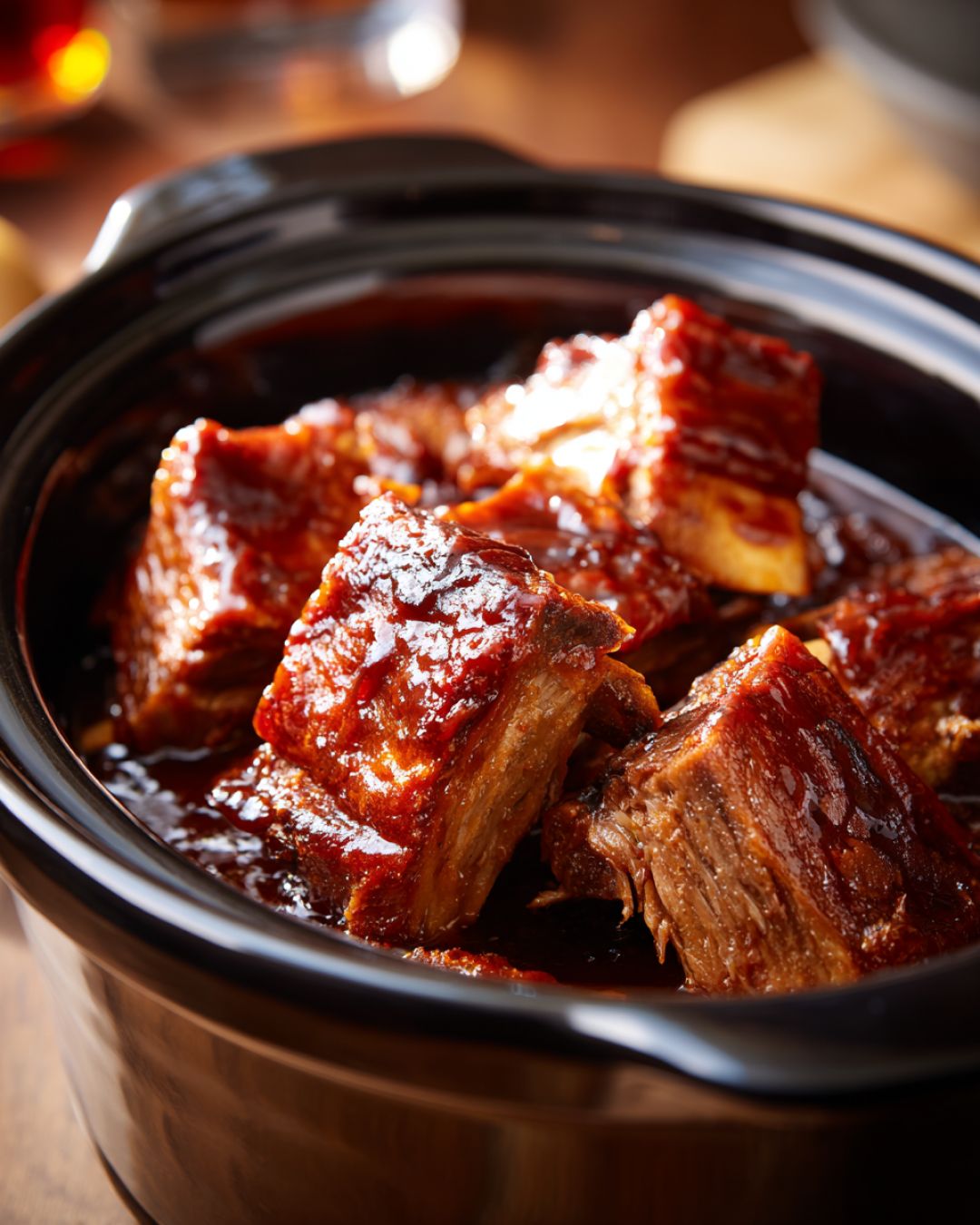 For picky eaters who aren’t big on strong flavors, choose a mild, sweeter barbecue sauce and use water instead of apple juice so the sauce is more familiar and less tangy. You can also shred the cooked ribs with two forks and serve the meat on hamburger buns as saucy pulled pork sandwiches—kids often like it better that way. If your family enjoys a little heat, use a spicy barbecue sauce or add a pinch of red pepper flakes to the sauce mixture before cooking. For a slightly smokier flavor, add 1 teaspoon of smoked paprika (this keeps you within the spirit of a simple ingredient list while still using pantry staples). If you want to sneak in a bit more nutrition, scatter sliced onions or carrot coins under the ribs before pouring on the sauce—technically more than four ingredients, but a nice option when you have time. Leftovers reheat beautifully; you can chop the meat and use it in quesadillas, on baked potatoes, or over rice bowls later in the week, which makes this recipe a handy “cook once, eat twice” option for busy family nights.